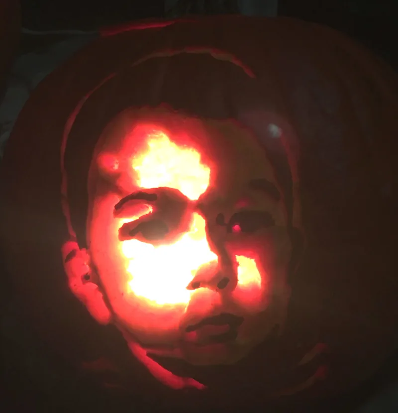 (Photo: My son’s first Jack O’ Lantern carving when he was 3 months old.)